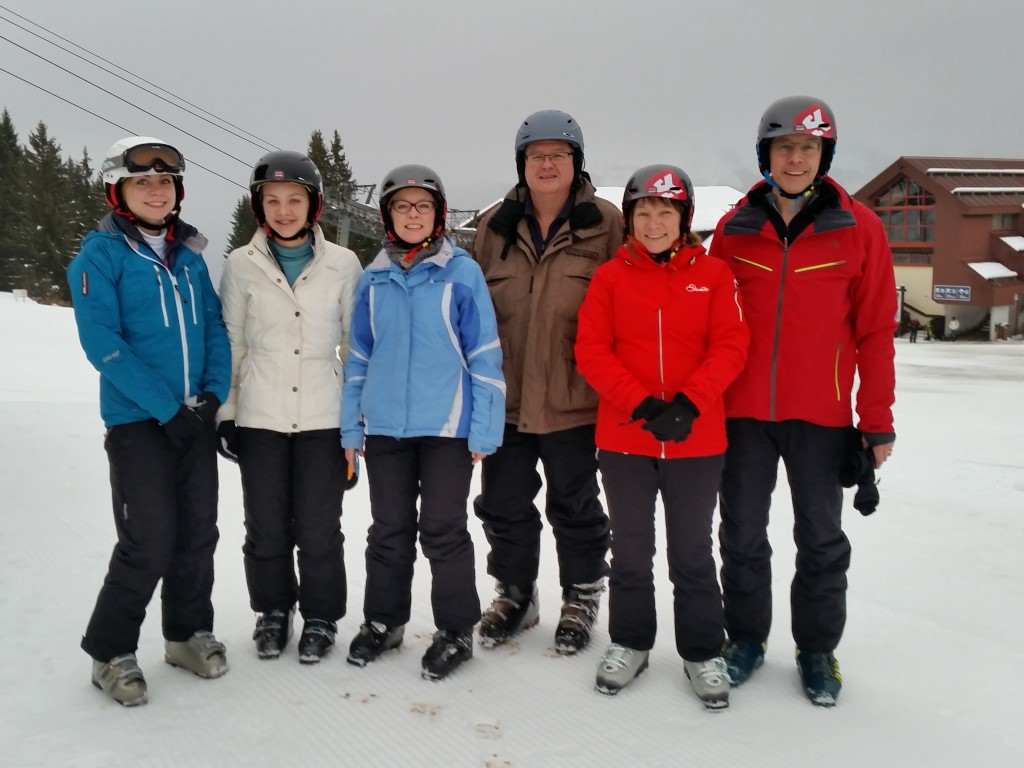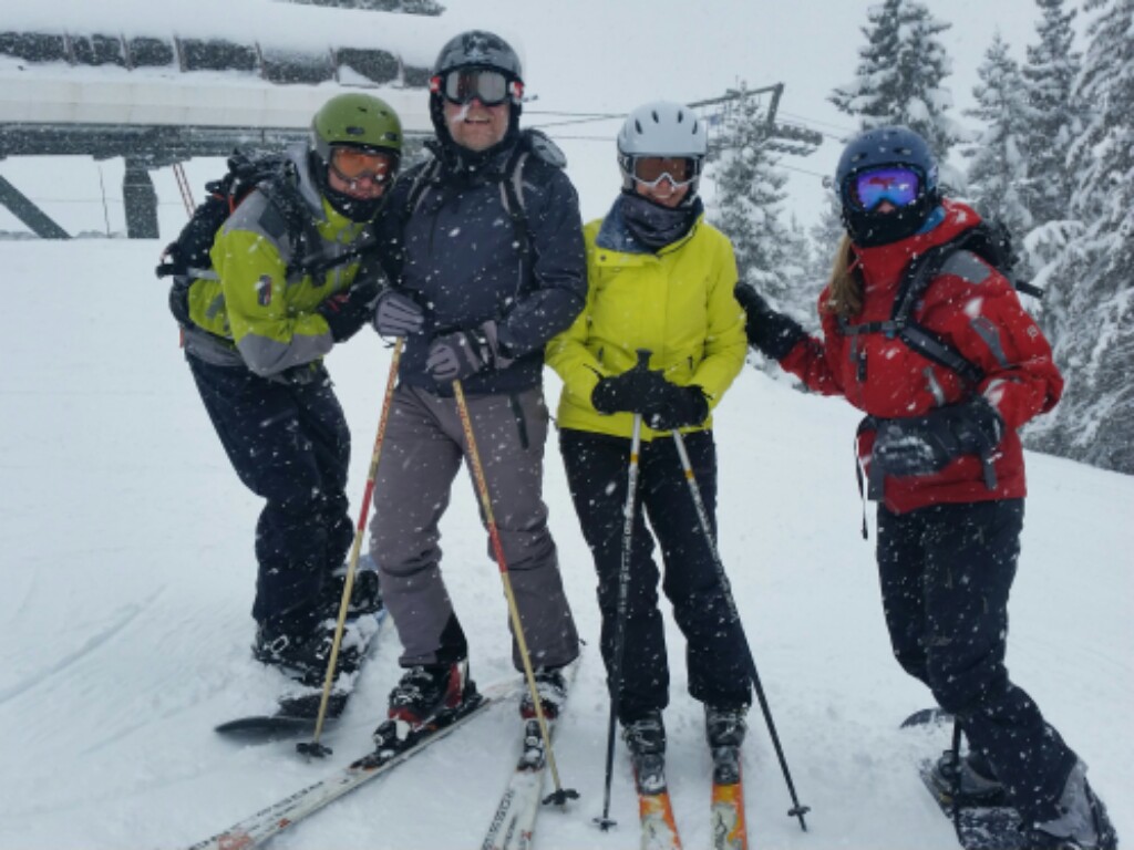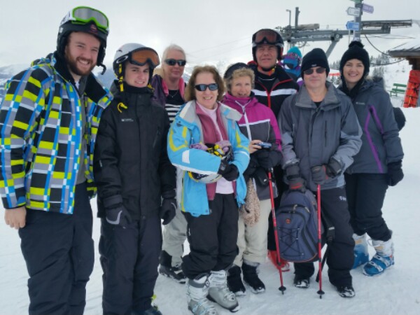 All four new skiers had a private group lesson all day on the Friday. Laura and Martin progressing nicely the first beginner slope to the second and even the third level slopes. Day two for the newbies and they found themselves skiing right from the top of the mountain, progressing to blue slopes on day three, it is amazing how much easier it is to learn to ski nowadays with this new equipment. Luckily we even had a morning without rain on the Sunday, before they had to depart. |