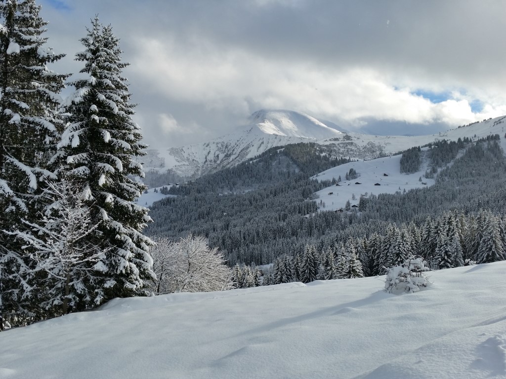 Amazing view across La Gettiaz. Almost as if generated by computer for a game as the perfect ski area. |