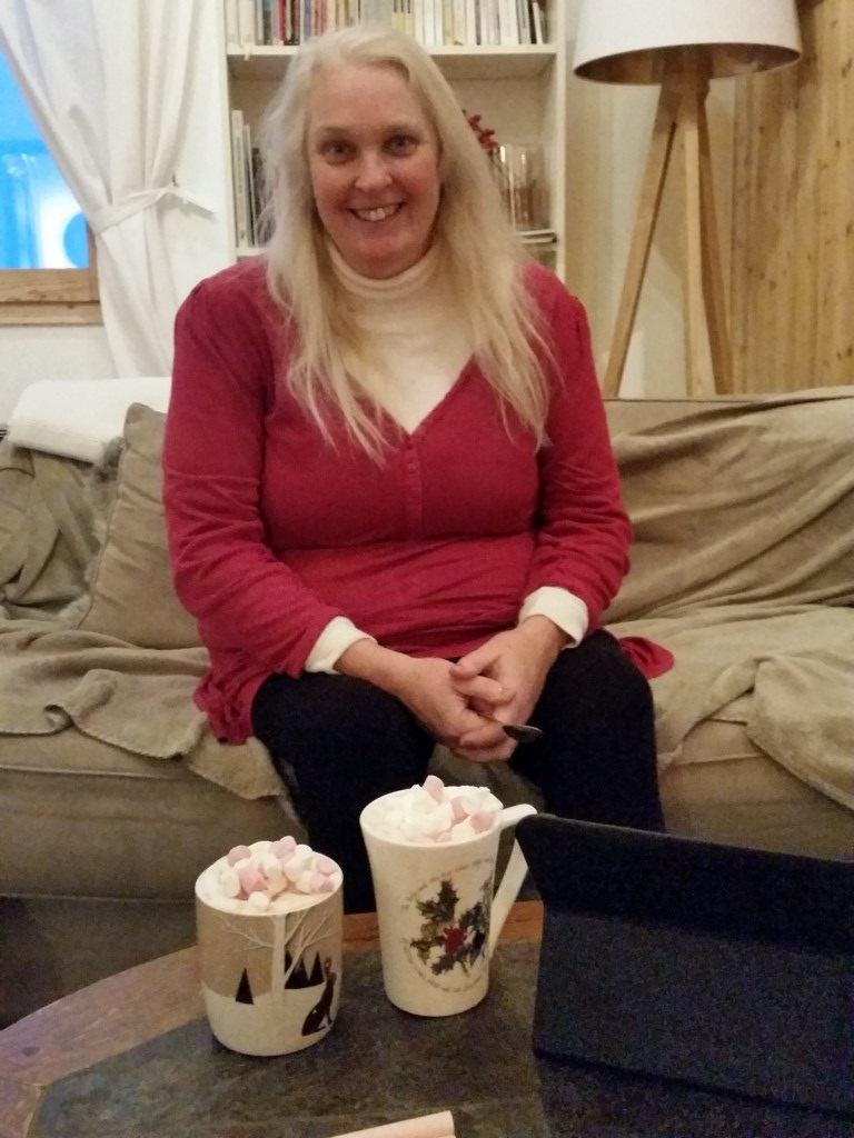 Back home again in our nice warm Chalet with a cup of Chocolat Chaud with marshmellows :) |