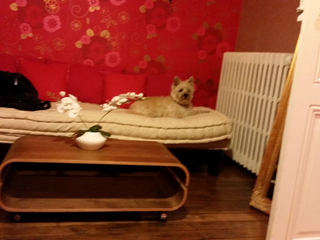 Penny already at home in our Moulin Rouge room. Off to breakfast then back on the road. Loads of snow arrive just in time today :) |