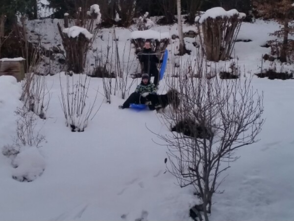 Finally we have some fresh snow again at the chalet. Just in time for the snowboarders. Some nice fresh tracks today after a rest day yesterday for me. Still suffering from my bruised ribs. But managed four hours skiing before the dose of drugs wore off. Went over to Megeve and found a lovely red and blue run with hardly anyone else there. Spot on :) |