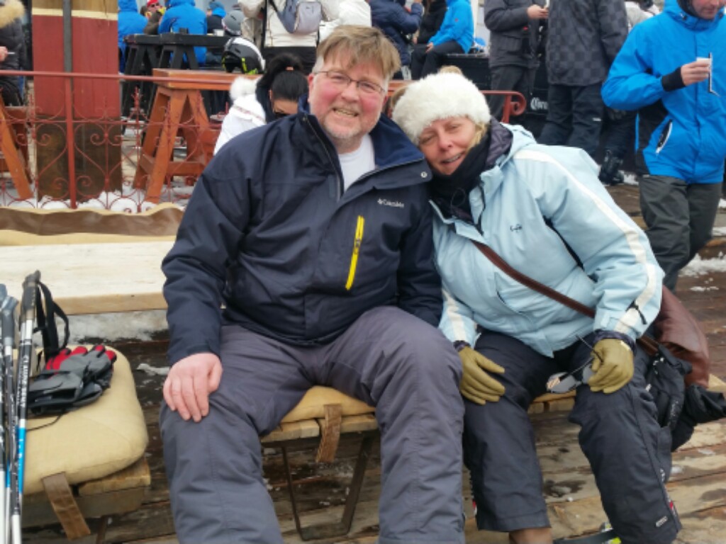 Graham and Jackie after their long hard climb up to the Folie Douce |