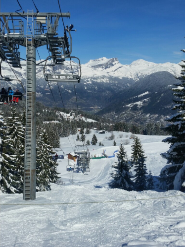 After day one in the cloud. Mat and family spend day two in beatiful sunshine up at Les Contimines. Sam and Zoe coming on in leaps and bounds this year. |